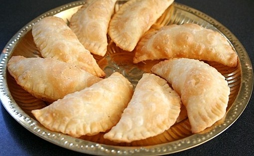 (அச்சு இல்லாமலும் செய்யலாம். அல்லது பூரியின் மத்தியில் வைத்து மடித்து, சோமாஸ் கட்டரால் ஓரங்களை வெட்டியும் செய்யலாம். இதுதான் பாரம்பரிய சோமாஸ்.