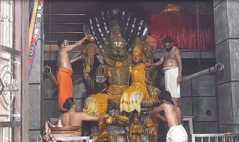 16 அடி உயர லட்சுமி நரசிம்மர் ஆலயத்தில் 7 மணி நேரம் இடைவிடாமல் அபிஷேகம்...