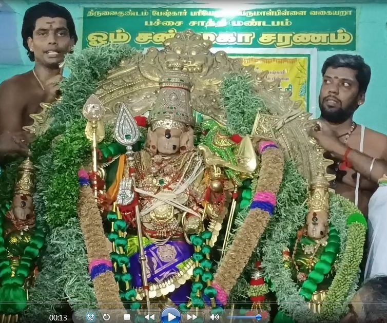 தேன் மற்றும் பஞ்சாமிர்தம் உள்ளிட்ட , 16 வகையான சிறப்பு அபிஷேகம் நடைபெற்றது. அலங்கார தீபாரனை நடைபெற்றது. அதனைத் தொடர்ந்து பச்சைக் கடைசல் சப்பரத்தில் சுவாமி சண்முகர் வள்ளி தெய்வானை அம்பாளுடன் பச்சை சாத்திக் கோலத்தில் எழுந்தருளி வீதி உலா வந்து பக்தர்களுக்கு அருட் பாலித்தார்.
