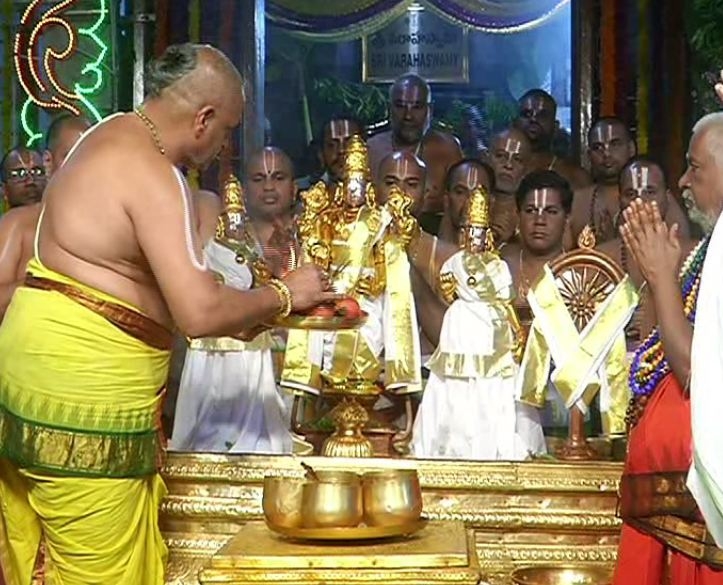 திருமலை ஏழுமலையான் ஆலயத்தில் ஆந்திர பிரமோற்சவம் கடந்த பதினெட்டாம் தேதி ஏற்றத்துடன் துவங்கி சிறப்பாக நடைபெற்றது. நாள்தோறும் காலை மாலை இரண்டு வேளைகளிலும் உற்சவம் மூர்த்தியான மலையைப்ப சுவாமி பல்வேறு வாகனங்களில் ஆலய மாட வீதிகளில் வலம் வந்தார். பிரம்மோற்சவத்தின் நிறைவு நிகழ்ச்சியாக தீர்த்தவாரி வெகு சிறப்பாக நடைபெற்றது முன்னதாக உற்சவ மூர்த்திகளான உபய தேவர்களுடன் கூடிய மலையப்பர் மற்றும் ஆயுதங்களில் ஒன்றான சுதர்சன சக்கரம் மாட வீதிகளில் வலமாக எடுத்து வந்து வராக சுவாமி ஆலய முன்பு உள்ள மண்டபத்தில் எழுந்தருள செய்தனர்.