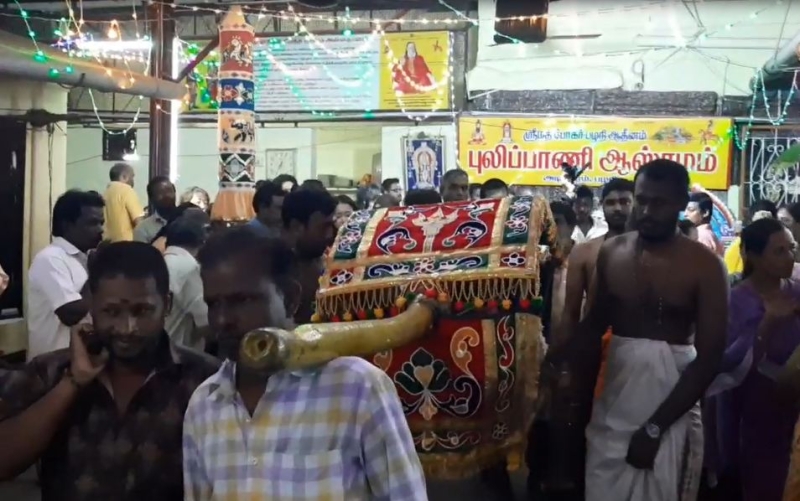 பழனியில் நவராத்திரி விரதம் முடிந்து புவனேஸ்வரி அம்மன் மலைக்கோயில் செல்லும் நிகழ்ச்சி நடைபெற்றது.