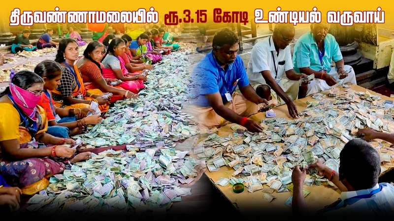 திருவண்ணாமலை அருள்மிகு அருணாசலேஸ்வரர் கோவிலுக்கு மார்கழி மாத பௌர்ணமி அன்று கிரிவலம் வந்து சென்ற பக்தர்கள் செலுத்திய உண்டியல் வருவாய் ரூ.3 கோடியே 15 லட்சம் ரொக்க பணமும், 210 கிராம் தங்கமும், 1695 கிராம் வெள்ளியும் பக்தர்கள் நேர்த்திக்கடனாக செலுத்தியுள்ளனர்.