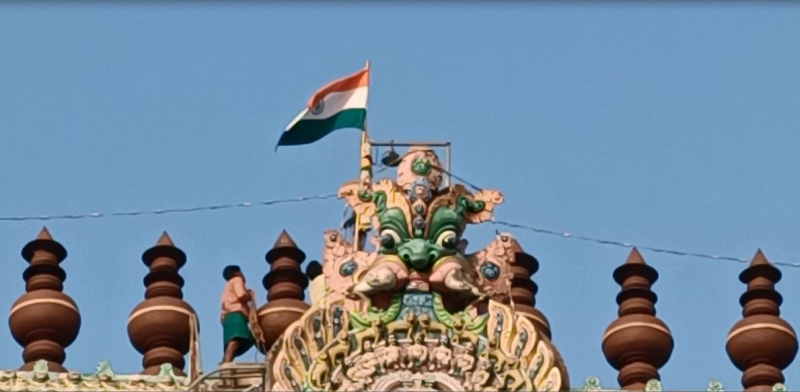பின்பு குடியரசு தினமான இன்று நமது இந்திய தேசியக் கொடியை வெள்ளித் தட்டில் வைத்து சிதம்பரம் நடராஜர் ஆலய பொது தீட்சதர்கள் சிவராம தீட்சதர் தலைமையில் ஊர்வலமாக நடராஜப் பெருமானின் காலடியில் வைத்து பூஜித்து பின்பு ஊர்வலமாக புறப்பட்டு மேல தாளங்கள் வாதியங்கள் முழங்க நமது இந்திய தேசியக் கொடியை ஊர்வலமாக கொண்டு சென்று 142 அடி உயரமுள்ள கீழ கோபுரத்தில் கொடி ஏற்றினார்கள்.