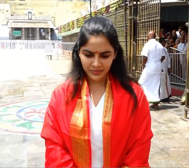 திருப்பதி ஏழுமலையான் கோவிலில் சாமி தரிசனம் செய்த பிரபல திரைப்பட நடிகை சம்யுக்தா மேனன்