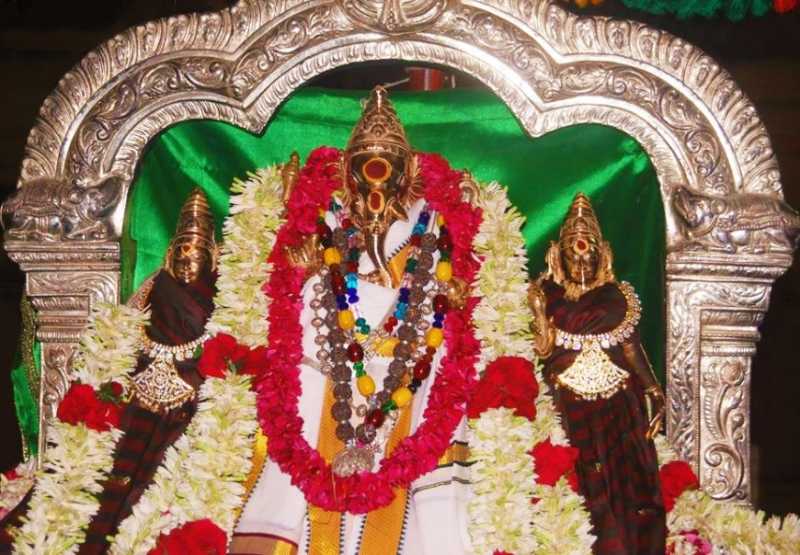 மூலவர் சக்தி சமேதராய் இருந்தபோதிலும், ஸித்தி புத்தி தேவியர்கள் சிலா ரூபமாக அல்லாமல் மூலவரின் பீடத்திலேயே மந்திர ஸ்வரூபத்தில் பிரதிஷ்டிக்கப்பட்டுள்ளனர் என்பது தனிச்சிறப்பு. சிவசொரூபமாகவே விநாயகர் வீற்றிருப்பதால், வேறெந்த ஆலயத்திலும் காண முடியாத வண்ணம், விநாயகப் பெருமானின் சந்நதிக்கு, இடப்புறத்தில் யோக நிஷ்டையில் அமர்ந்த நிலையில் காட்சியளிக்கிறார் ஸ்ரீகும்ப சண்டிகேஸ்வரர். திருமணம் தடைபட்டு வருத்தமுற்றிருக்கும் பக்தர்கள் இந்தத் தலத்துக்கு வந்து தட்சிணாமூர்த்தி விநாயகரிடம் வேண்டிக் கொண்டால், உடனே திருமணம் நடைபெறுவதாக நம்பிக்கையுடன் கூறுகின்றனர். அதேபோல் தம்பதியரிடையே கருத்து வேற்றுமை, குழந்தை பாக்கியம் இல்லாமை போன்ற பல பிரச்னைகளையும் போக்கி மகிழ்ச்சியைத்தருகிறார் இக்கோவிலில் வீற்றிருக்கும் விநாயகர்.