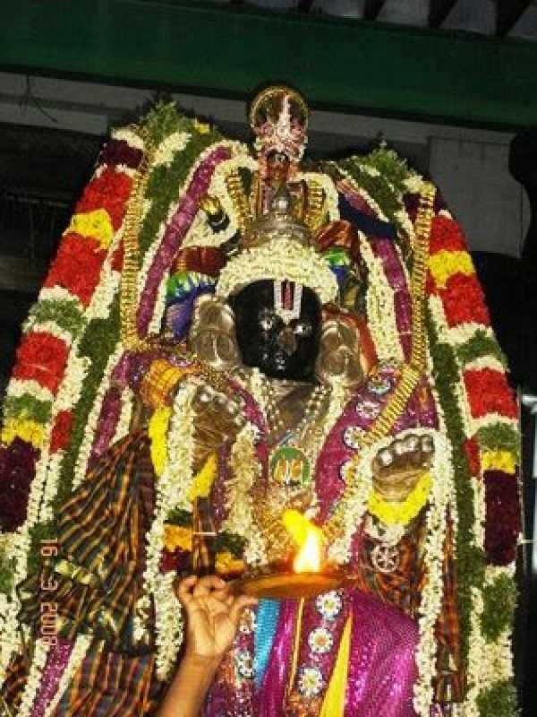 பெருமாள் மேதாவி முனிவருக்கு கொடுத்த வரத்தின் படி , தாயார் அன்ன வாகனத்தில் எழுந்தருளுகின்றாள் . பெருமாளோ கருடனில் எழுந்தருளுகின்றார். அன்னத்தை ஒப்பிடும் போது கருடன் பலம் மிகுந்தவர் , வேகமாக செல்லக்கூடிய பறவை. எனவே தான் கல் கருடனின் எடை கூடிக்கொண்டே செல்வதாக புராணம் கூறுகிறது . அதனால் இத் திருகோவிலில் இப்போதும் தாயாருக்கு தான் முதலிடம் .