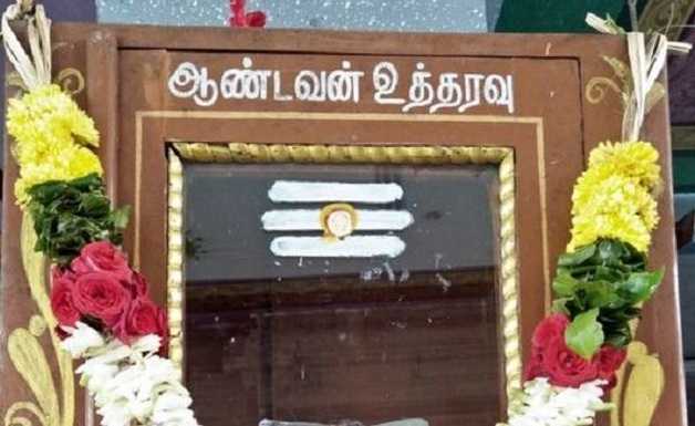 சிவன்மலை முருகன் கோயில் ஆண்டவன் உத்தரவு கண்ணாடி பெட்டியில் தீர்த்தக் கலசம் வைக்க உத்தரவு வந்து இருக்கிறது.