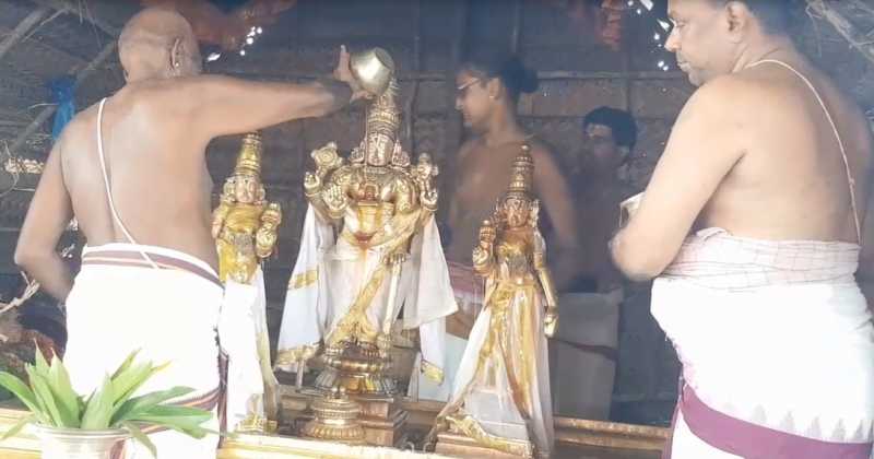 திருநின்றவூரில் இருந்து கூவம் ஆற்றங்கரை வந்த பக்தவத்சல பெருமாளுக்கு பக்தர்கள் முன்னிலையில் பால் ,தயிர்,சந்தனம்,பன்னீர், தேன்,இளநீர் என பல்வேறு அபிஷேகங்கள் நடைபெற்றன.