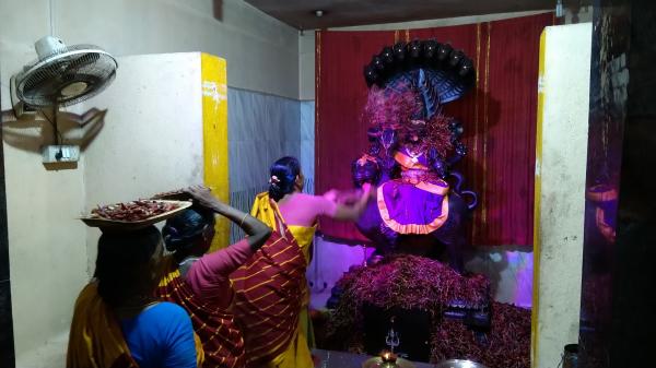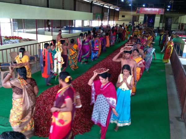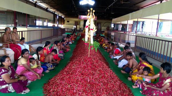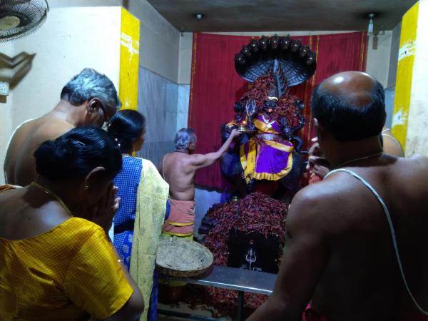 ஆடி செவ்வாய்கிழமையான துவங்கிய 1000 கிலோ மிளகாய் அபிஷேகம் பக்தர்களுக்கு ஏற்படும் திருஷ்டி தோஷங்கள் அகலவும், இரத்த சம்பந்தமான நோய்கள் நிவர்த்தியாகவும், திருமணம் ஆகாத பெண்களுக்கு விரைவில் திருமணம் நடைபெறவும், புத்திர பக்யம் உண்டாகவும், தடைகள் நிவர்த்தியாகி முயற்சிகளில் வெற்றி பெறவும், ஏவல், பில்லி, சூன்யம் நம்மை விட்டு அகலவும், சத்ரு உபாதைகள் நிவர்த்தியாகவும் இங்கு பிரத்யேகமாக வைக்கப்பட்டுள்ள மிளகாய் வற்றலை பெற்று யாக குண்டத்தை மூன்று முறை வலம் வந்து அவரவர்கள் பிரார்த்தனை நிறைவேற மஹா காளி ப்ரத்யங்கிரா தேவிக்கு அபிஷேகம் செய்தனர்.