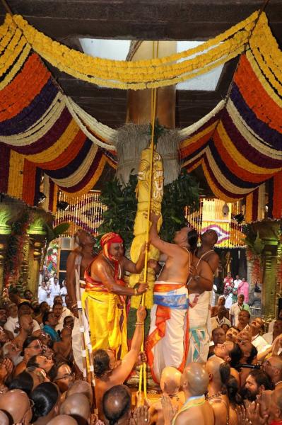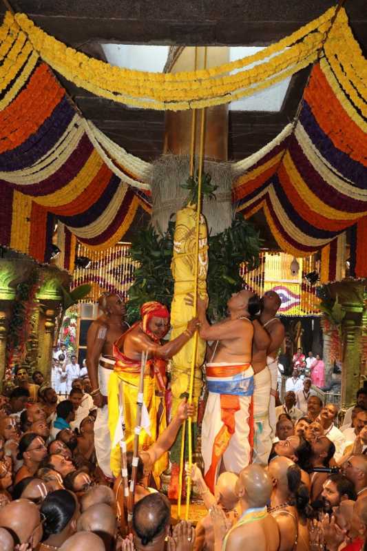 திருப்பதி ஏழுமலையான் கோயில் பிரம்மோற்சவம் கொடி ஏற்றத்துடன் தொடங்கியது
