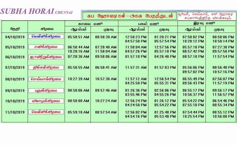 இந்த வாரத்திற்கான சுப ஹோரைகள் (04/10/2019 - 11/10/2019)