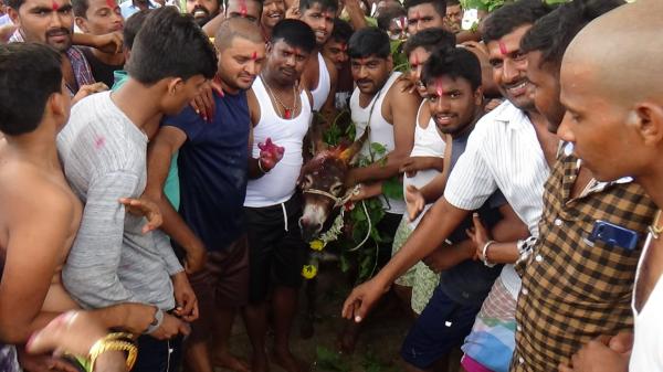ஊர்ப்பெரியவர்கள் முன்னிலையில் நடைபெற்ற சுவாமி அழைப்பு நிகழ்ச்சியில் தாரை தப்பட்டைகள் முழங்க கழுதை மேல் சுவாமி கோயிலுக்கு ஊர்வலமாக அழைத்து வரப்பட்டது. பின்னர் 3 மணிக்கு அலங்கரிக்கப்பட்ட பீரேஸ்வரருக்கு பூஜைகள் செய்யப்பட்டது. பின்னர் ஊர்ப்பொதமக்கள் அனைவரும் வெற்றுடம்புடன் கோயிலுக்கு பின்புறம் கொட்டி வைக்கப்பட்ட சாணத்தை உருண்டைகளாக செய்து ஒருவருக்கொருவர் மீது அடித்து மகிழ்ந்தனர்.