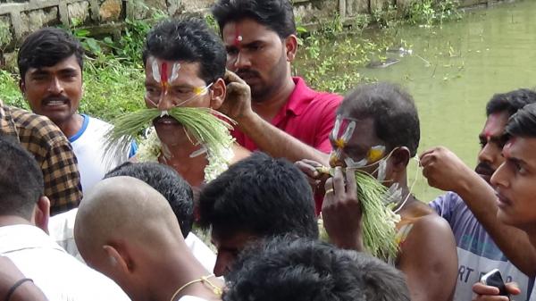 விழாவை ஒட்டி ஊரில் உள்ள அனைத்து பசுமாட்டு சாணங்கள் சேகரிக்கப்பட்டு கோயிலின் பின்புறம் குவித்து வைக்கப்பட்டது. மதியம் 12 மணிக்கு சிறுவர்கள் ஒருவர் மீது சாணியடித்து விளையாடி மகிழ்ந்தனர். பின்னர் 2 மணிக்கு அருகே உள்ள குளத்திலிருந்து சுவாமி அழைப்பு நடைபெற்றது.