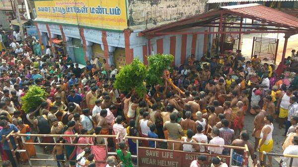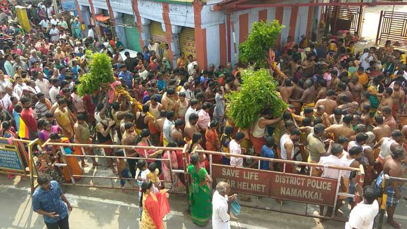 திருச்செங்கோட்டில் 18 மாரியம்மன் கோயில்களிலும் இன்று கம்பம் விடும் விழா வெகுவிமர்சியாக நடைபெற்றது.