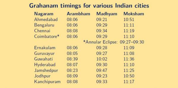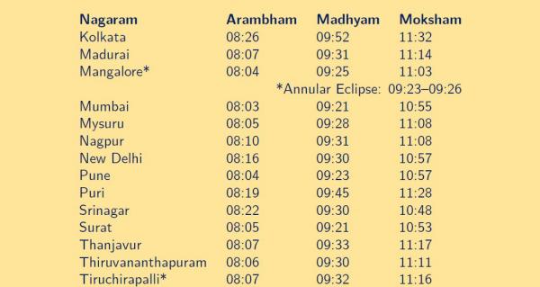 உங்கள் ஊரில் சூரிய கிரகணம் தொடங்கி முடியும் நேரம் குறித்து விரிவான தகவல்கள்.... shakthionline Team Dec 25, 2019 09:59 pm உங்கள் ஊரில் சூரிய கிரகணம் தொடங்கி முடியும் நேரம் குறித்து விரிவான தகவல்கள்.... Tags Solar eclipseசூரியகிரகணம் PREVIOUS POST திருப்பதி ஏழுமலையான் கோவிலில் நாளை மதியம் 12 மணி வரை தரிசனம் ரத்து 25 Dec, 2019 NEXT POST அரிதான வளைவு சூரிய கிரகணம்.... 25 Dec, 2019 You may also read Related - Related மார்ச் 3 அன்று திருப்பதி செல்பவரா நீங்கள்? 10 மணி நேரம் நடை சாத்தப்படுகிறது முழு விவரம்! March, 20, 2017 ஆலயம் ஒன்று, மும்மூர்த்திகள் மூன்று, திருக்காட்சி நம்பிகள் கண்ட பிரம்மோற்சவம் மூன்று! Jan 01, 1970 உலக உயிர்களுக்கு அறிவை வழங்கும் புதனின் தந்தை யார் ? Jan 01, 1970 செல்வ வளத்தைப் பெருக்கும் சூரியன் வழிபாடு! Jan 01, 1970
