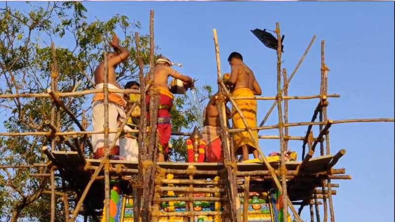 இதனை தொடர்ந்து மாக பூர்ணாதி மற்றும் கலச புறப்பாடு நடைபெற்றது.பின்னர் மேள தாளத்துடன் மந்திரங்கள் முழங்க கோபுரத்தில் உள்ள கலசத்திற்கு புனித நீர் ஊற்றப்பட்டு கும்பாபிஷேகம் நடைபெற்றது.அதேபோல் ஆலயத்தில் அமைந்துள்ள நாக விநாயகர், நாக முருகர் உட்பட பரிவார தெய்வங்களும் கும்பாபிஷேகம் நடைபெற்றன.