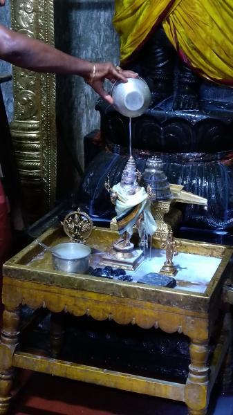 தொடர்ந்து ஸ்ரீ ஆரோக்ய லக்ஷ்மி சமேத தன்வந்திரி பெருமாளுக்கு பஞ்ச திரவிய திருமஞ்சனமும், ஸ்ரீ அஷ்ட நாக கருடாருக்கு பால் மற்றும் தேன் திருமஞ்சனம் நடைபெற்றது. இதில் யக்ஞஸ்ரீ முரளிதர ஸ்வாமிகள் கலந்துகொண்டு உலக மக்கள் கொரோனா வைரஸ் பிடியில் இருந்து மீண்டு, விரைவில் முழு ஆரோக்கியமும் நலமும் பெற பிரார்த்தனை செய்தார்.