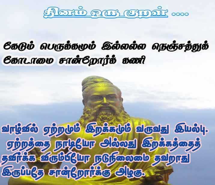 ஒருவர்க்கு வாழ்வும், தாழ்வும் உலக இயற்கை; அந்த இரு நிலைமையிலும் நடுவுநிலையாக இருந்து உறுதி காட்டுவதே பெரியோர்க்கு அழகாகும்