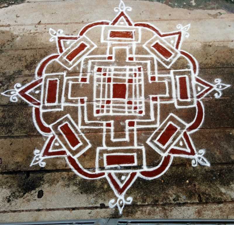 நவராத்திரி பூஜையில் ஐஸ்வர்யம் தரும் காவி கோலம்....