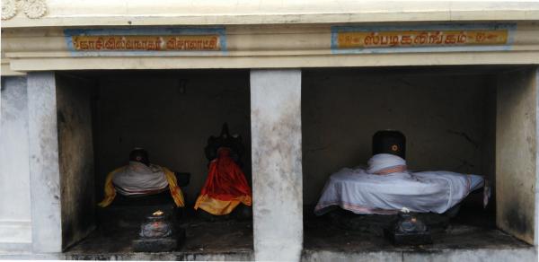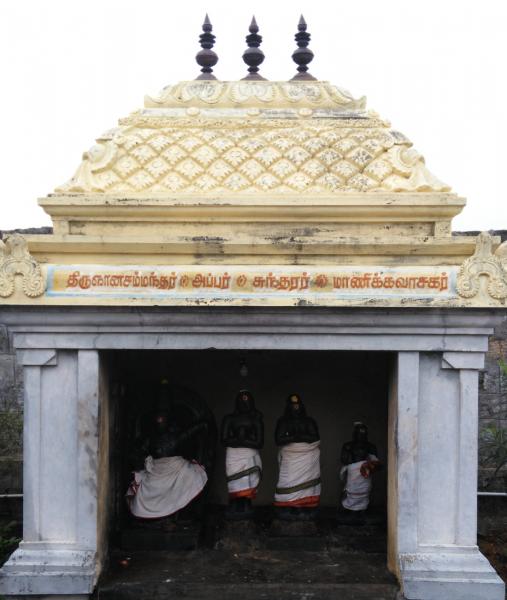 Another legend associated with this temple is that of Saint Gnanasambanthar. During his pilgrimage, he reached this place late in the evening and was having trouble finding the temple. The Lord sent Goddess Parvathi to guide Sambanthar to the temple. Overjoyed that the Goddess herself had come to take him to the temple, Sambanthar danced and sang the praise of Lord Shiva. A beautiful idol of Gnanasambanthar in dancing form can be seen here.