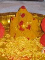 4. கோவர்த்தனதாரி: கிருஷ்ணன் தன் சுண்டு விரலால் கோவர்த்தன கிரியைத் தூக்கும் கோலம்.