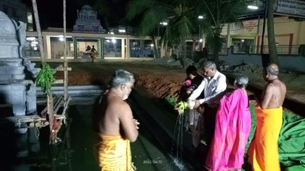 இராணிப்பேட்டை மாவட்டம், வாலாஜாபேட்டை, அனந்தலை மதுரா, கீழ்புதுப்பேட்டையில் உள்ள ஸ்ரீ தன்வந்திரி ஆரோக்ய பீடத்தில் கயிலை ஞானகுரு டாக்டர் ஸ்ரீ முரளிதர ஸ்வாமிகள் அருளானைப்படி 11.04.2022 திங்கட்கிழமை மங்கள சண்டி யாகம், வருண ஜப யாகம் நடைபெற்றது அதனை தொடர்ந்து புதியதாக அமைக்கப்பட்டு வருகின்ற ஸ்ரீ தன்வந்திரி தீர்த்த குளத்திற்கு தண்ணீர் நிரப்புதல் பூஜை நடைபெற்றது.