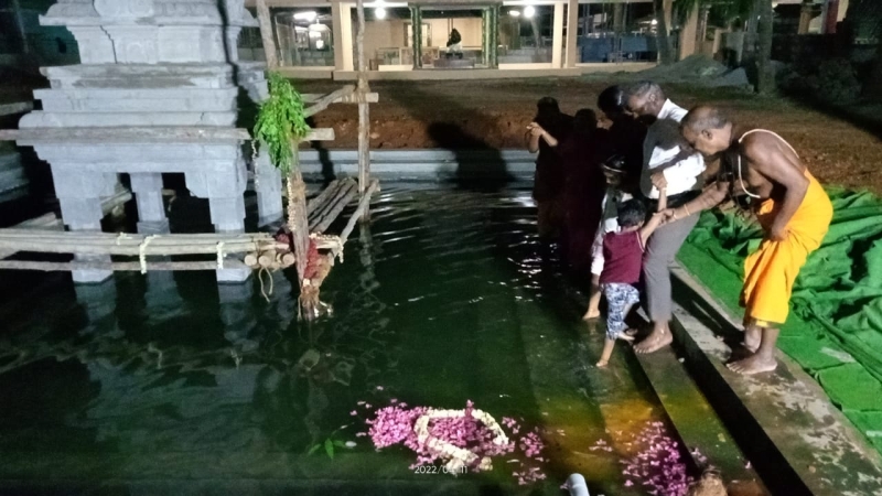 50 அடி நீளம், 50 அடி அகலம் 13 அடி ஆழத்தில் குளம் அமைக்கப்பட்டு வருகிறது, நடுவில் 6 x13 என்ற அளவில் நீராழி மண்டபம் அமைத்து தண்ணீர் நிரப்புதல் பூஜை செய்யப்பட்டது. இதில் இராணிப்பேட்டை மாவட்ட ஆட்சியர் திரு.தெ. பாஸ்கர பாண்டியன் குடும்பத்துடன் கலந்து கொண்டு கங்கா பூஜை செய்தனர். முதலில் ஸ்ரீ தன்வந்திரி விநாயகர் பூஜை, ஸ்ரீ துர்கா பூஜை நடைபெற்றது. இதில் ஏராளமான பக்தர்கள் பங்கேற்று ஸ்வாமிகள் ஆசிபெற்றனர். இந்த தகவலை தன்வந்திரி குடும்பத்தினர் தெரிவித்தனர்.
