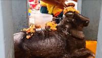 பெருமாளை இங்கேயே வரவழைத்தால் என்ன என்று யோசித்தார். படபடவென களிமண்ணால் ஒரு சிலையைச் செய்தார். பூ வாங்குமளவுக்கு அவரிடம் பணம் கிடையாது. எனவே, தான் வேலை செய்து முடித்த மீந்து விடும் மண்ணை சிறு சிறு பூக்களாகச் செய்து அதைக் கோர்த்து சிலையின் கழுத்தில் போட்டு வணங்கி வந்தார். அவ்வூர் அரசர் தொண்டைமானும் பெருமாள் பக்தர். அவர், சனிக்கிழமைகளில் தங்கப்பூ மாலை ஒன்றை அணிவிப்பார். ஒருமுறை இப்படி அணிந்து விட்டு, மறுவாரம் வந்தார்.
