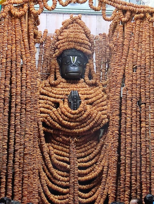 நாமக்கல் ஆஞ்சநேயர் கோவிலில் அனுமன் ஜெயந்தி விழா.... 1,00,008 வடை மாலை அலங்காரம்