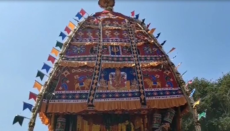 இதனை தொடர்ந்து உற்சவர் அங்காளம் மனுக்கு சிறப்பு அபிஷேகம் மற்றும் பல்வேறு மலர்களை கொண்டு அலங்காரம் செய்விக்கப்பெற்று, சரியாக பகல் 2 மணிக்கு அம்மன் அலங்கரிக்கப்பட்ட புதிய திருத்தேரில் அமர்ந்து பக்தர்களுக்கு காட்சி அளித்தார். பின்னர் அம்மனுக்கு மகா தீபாரதனை நடைபெற்றது.