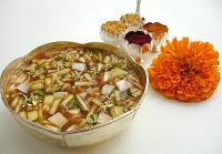சித்திரை மாதத்தில் சூரியன் மேஷ ராசியில் மிகவும் உச்சமாக பிரகாசிப்பதால் அன்றைய தினம் பானகம், நீர்மோர் ஆகியவற்றை நைவேத்தியம் செய்ய வேண்டும். இனிப்பு, கசப்பு, உவர்ப்பு, புளிப்பு, துவர்ப்பு, கார்ப்பு என அறுசுவை கொண்ட உணவுகளை சமைத்து உண்பர். மதிய உணவில் வேப்பம்பூ பச்சடி, மாங்காய்ப்பச்சடி, பருப்பு வடை, பருப்பு பாயாசம், மசால் வடை போன்றவை இடம்பெறுதல் அவசியம்.