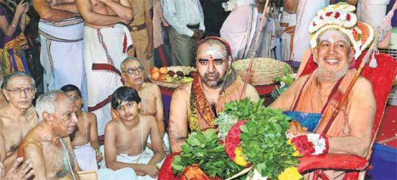தஞ்சையில் காஞ்சி சங்கராச்சாரியாருக்கு 1,000 தங்ககாசுகளால் சொர்ணபாத பூஜையை விஜயேந்திரர் செய்து வைத்தார்.