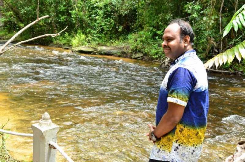 அருவி எனக்குத் தண்ணிபட்ட பாடு. ஆகவே, என்னத்த பெரிய அருவி, என்னத்த பெரிய தண்ணீர் என்று எகத்தாளமாக ரா-வுடன் வண்டியில் ஏறினேன். ஏறிக் கொஞ்ச தூரம் போனதும் இறங்குங்கள் என்றார். எல்லாத்தையும் இங்கேயே கழட்டி வைச்சுட்டுக் குளிக்கிற மாதிரி வாங்க அப்பு என்றார். வேனுக்கு வெளியே அம்புட்டையும் உருவிப் போட்டு உள்ளாடைக்கு மேல் துண்டை மட்டும் கட்டிக் கொண்டு அருவியை நோக்கி நடக்கத் தொடங்கினோம்.