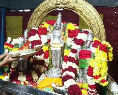 தனித்தனி தோளுக்கினியான்களில் புறப்பாடு நடைபெற்று திருத்தேர் எழுந்தருளல் நடைபெற்றது. பின்னர் காலை 8.05 மணிக்கு தேரோட்டத்தை மாவட்ட ஆட்சித் தலைவர் அ.சிவஞானம் வடம் பிடித்து இழுத்து தொடங்கி வைத்தார். பக்தர்கள் மிகுந்த உற்சாகத்துடன் தேரை நான்கு ரத வீதிகளின் வழியே வடம் பிடித்து இழுத்து வந்தனர்.