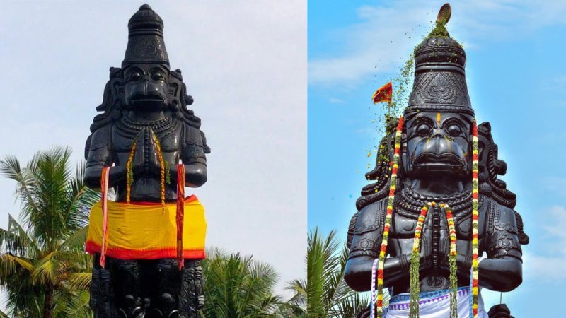 அனுமனின் உத்தரவுப்படியே, 108 டன் எடையில், தலை முதல் பாதம் வரை 37 அடி மற்றும் 4 அடி பீடம் என மொத்தம் 41 அடி உயரத்தில் இச்சிலை செதுக்கப்பட்டது. கையில் ஜெபமாலையுடன், சதா ராம நாமத்தை உச்சரித்தபடி தெற்கு நோக்கி ஆஞ்சநேயர் இங்கு அருள்பாலிக்கிறார்.