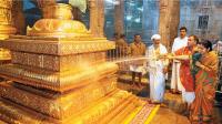 வருடாந்திர பிரம்மோற்சவ விழாவையொட்டி திருப்பதி ஏழுமலையான் கோவிலில், கோவில் ஆழ்வார் திருமஞ்சனம் எனப்படும் தூய்மைப்பணி நடந்தது.