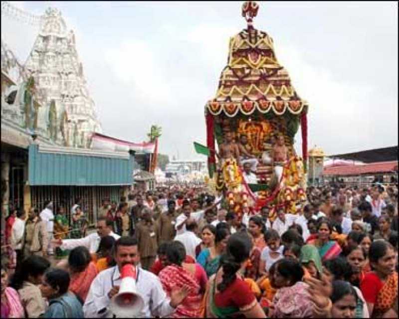 இந்த ஊர்வலத்தில் லட்சக்கணக்கான பக்தர்கள் கலந்து கொண்டனர் என கோவில் அதிகாரிகள் கூறியுள்ளனர். அதனுடன் பாரம்பரிய அலங்காரத்துடன் கூடிய தேரில் பல்வேறு ரத்தினங்கள் பதித்த ஆபரணங்களுடன் வெங்கடேஸ்வரா மற்றும் அவரது இரு பக்கமும் ஸ்ரீ லட்சுமி மற்றும் ஸ்ரீ பத்மாவதி ஆகியோரின் பழைமையான சிலைகள் இடம் பெற்றிருந்தன.